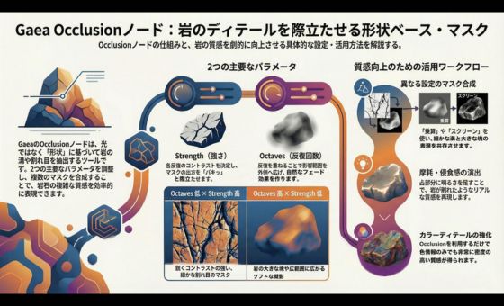 🏔 Gaea Node Tutorial Gaea Node: Occlusion 岩の割れ目を強調する形状ベース・マスク この動…