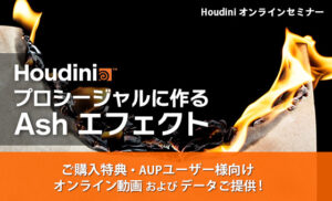 今回のセミナーでは「Disintegration」と呼ばれるオブジェクトが燃焼し、灰化する現象をビジュアルエフェクトとして再現することを試みます。燃焼するオブジェクトのセットアップを行い、複数回のシミュレーションを行うことで最終的な結果を得ます。この方法は、紙の燃焼だけでなく映像表現として、現実世界では燃えることがない対象物が灰化させ、消失していく表現をつくるときにも便利で、入力されるオブジェクトを差し替えれば幅広く活用でき、Houdiniで再現を行うメリットと言えます。