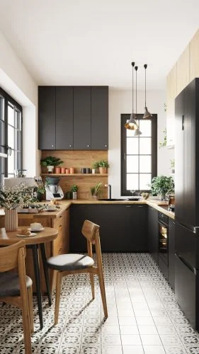 5つの完成済みキッチンシーン:それぞれ異なるスタイル(モダン、ミニマル、クラシックなど)で構成。用途に応じて使い分け可能。
