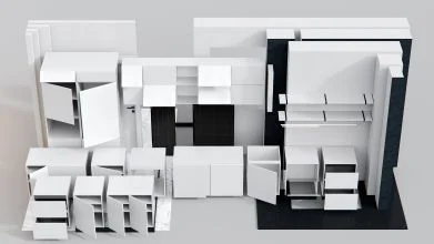モジュール式構造:キャビネットやカウンターをパーツ単位で組み替えられるため、プロジェクトに合わせたカスタマイズが簡単。