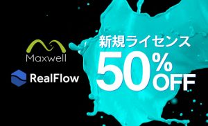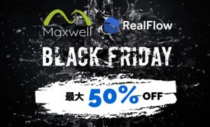 2018年11月23日(金)から27日(火)、Nextlimit社製品を特別価格でご提供致します。このセールでは、RealFlow, Maxwell Render 各新規ライセンス(各ノードロック・フローティング)を通常価格から50%引きでご提供致します。ご検討中の方は、ぜひこの機会にご検討ください。