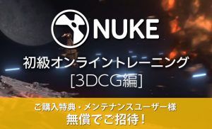 対象のNuke製品をご購入頂いたお客様は、2023年3月開催予定の Nuke 初級オンライントレーニング [3DCG編] (通常:16,500円[税込]) に無償でご招待致します。この機会にぜひご検討ください。