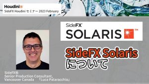 今回のセミナーでは、SideFX本社よりシニアプロダクションコンサルタント Luca Pataracchia 様が来日され、Houdini CFX (Crowds、KineFX、Muscles、 Fur/Hair 等) の解説および USD/Solaris の最新情報を紹介いただきました。