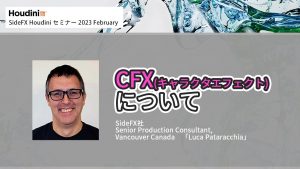 今回のセミナーでは、SideFX本社よりシニアプロダクションコンサルタント Luca Pataracchia 様が来日され、Houdini CFX (Crowds、KineFX、Muscles、 Fur/Hair 等) の解説および USD/Solaris の最新情報を紹介いただきました。