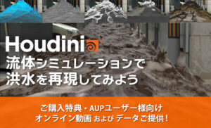 今回のセミナーではHoudiniで水の表現を行うための方法を学ぶため、街を流れる洪水のシーンを作成します。水の表現を作成したいが、そのためにはどのような要素が必要で、どのようなワークフローで組む必要があるのかを学んでいただくことを目的としています。