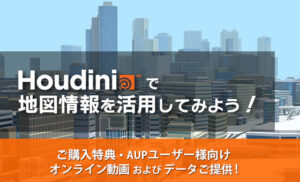 今回のセミナーでは、それらを使って実際の地形をHoudiniのHeight Fieldで再現・編集したり、都市の地図データからビルや道路といった景観を作成するための基本的な手法を、実際のHoudiniのノードネットワークを見ながら学んでいきます。