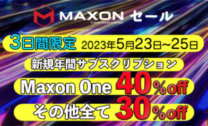 Maxonでは、5月23日~25日、新規購入の年間サブスクリプションライセンスのセールを実施します。対象ライセンスは、年間個人ライセンスとチームライセンスです。