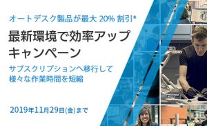 キャンペーン期間中、保守プランを未契約、あるいは契約期限切れの対象製品の2014 バージョンから 2019 バージョンの永久ライセンスのシリアル番号を提出することで、業界別コレクションの1 年もしくは3 年のシングルユーザー アクセスまたはマルチユーザー アクセス サブスクリプションメンバーシップが、最大20% OFF* でご購入いただけます。今お持ちのシリアル番号が単体製品でも、業界別コレクションを20% OFF* でご購入いただけます。是非、この機会にお得な価格で最新版の導入をご検討ください。