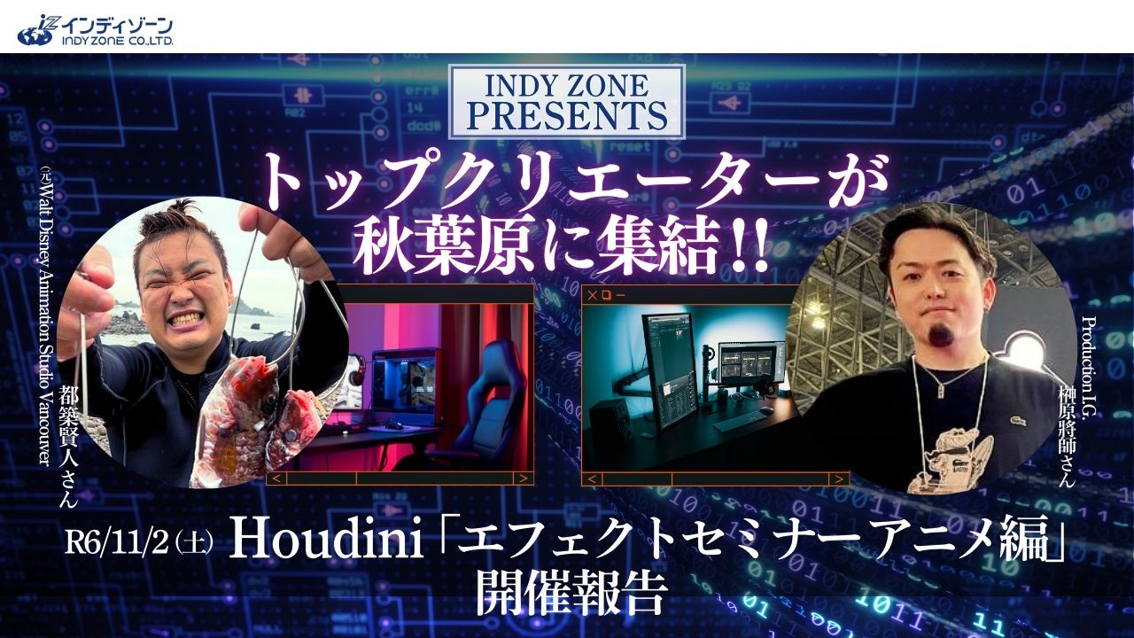 【トップクリエーターが秋葉原に集結!】「Houdini エフェクトセミナー アニメ編」開催しました。 日付: 2026-01-15 「Houdini エフェクトセミナー アニメ編」開催報告! 令和6年11月2日(土)「Houdini エフェクトセミナー アニメ編…